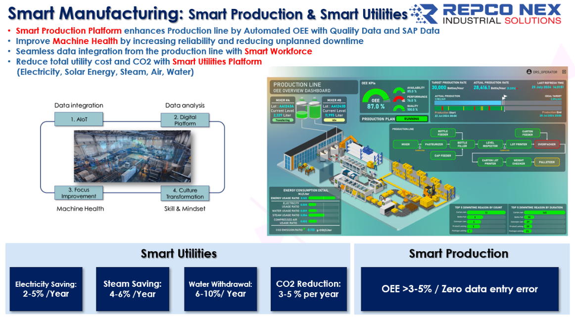 REPCO NEX introduces the Smart Manufacturing Solution — an integrated approach that brings together smart sensors, AI-powered analytics, and digital platforms to empower operators and decision-makers alike.